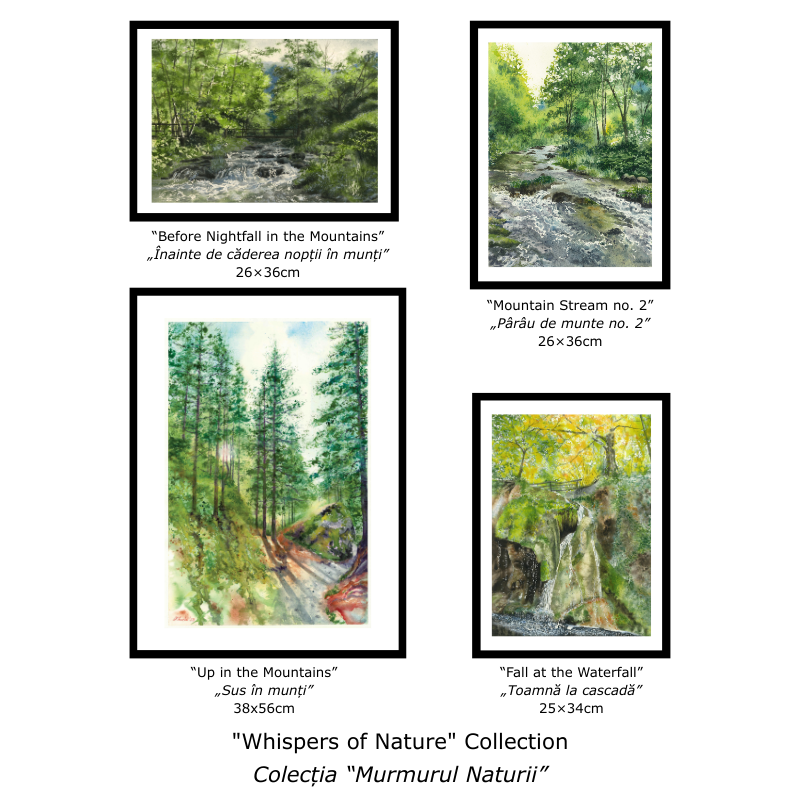 I paint to invite deeper connection with light, place, and memory, sharing echoes of nostalgia through transparent watercolour. Trained in architecture and arts, I blend structural sensitivity with a love for dissolving boundaries- between the precise and the transient, the seen and the felt. My work is rooted in landscape and nature: forests, Romanian homes, shifting seasons, quiet streams, and majestic mountain views. I temper realism with atmosphere- soft shadows, diffused light, translucence, and the tension between clarity and mystery. Watercolour gives me tools to express mood and memory: how sunlight filters through leaves, mist hovers, or rural buildings quietly endure the passing of time, the lack of care, the weather. Technique matters- the rhythm of washes, the pigment, the paper- but more than perfection, I seek honesty. My art is an offering: to bring beauty and nostalgia into homes, and to let viewers find in each painting a moment of stillness, emotion, and wonder.