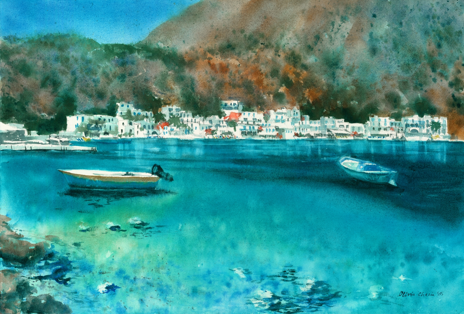 “Summer Colors” (Loutro, Crete, Greece)- transparent watercolors from Daniel Smith and White Nights on Arches cotton paper, bright white, cold pressed, 300g/m. 38x56cm. 2025