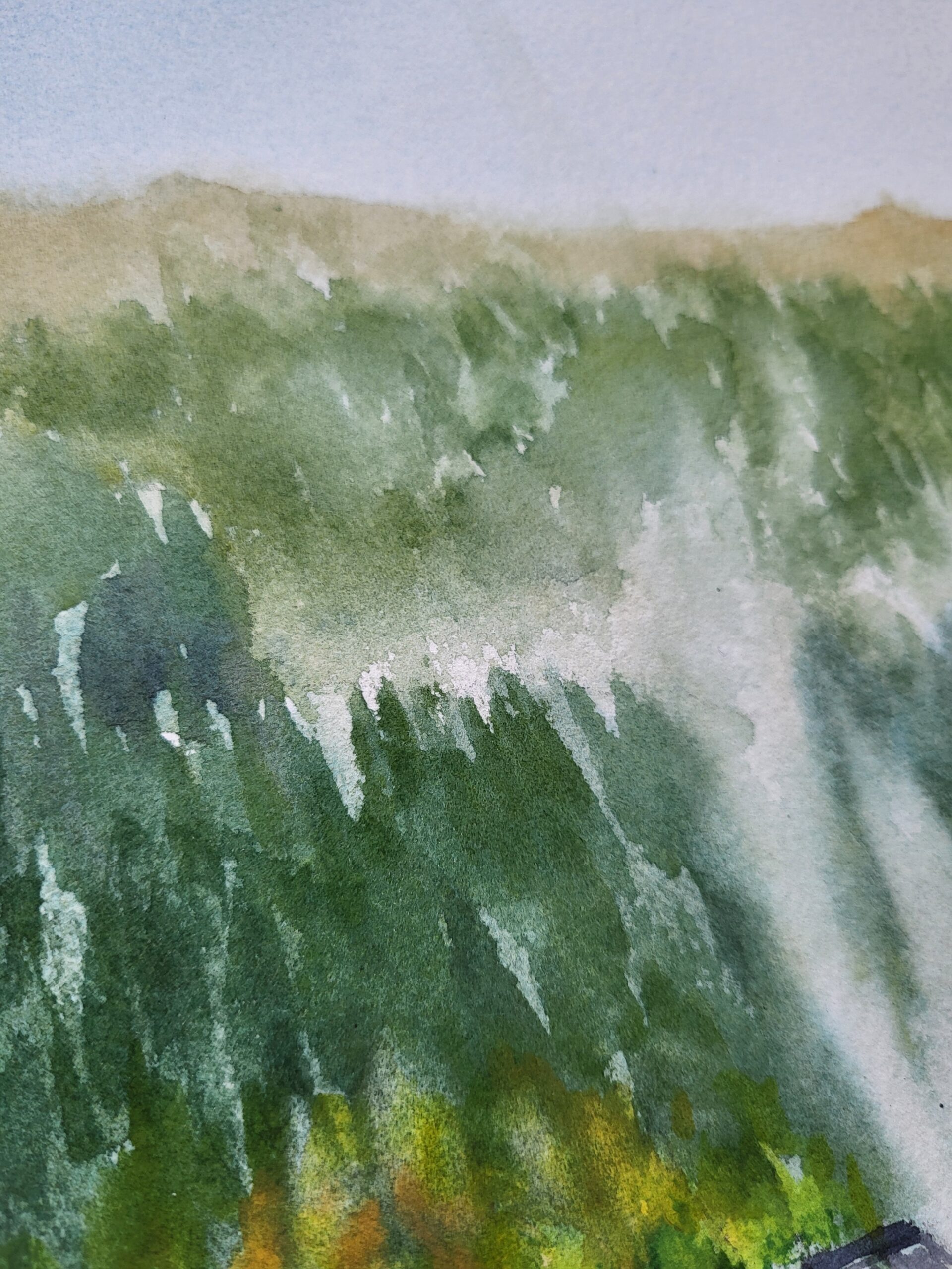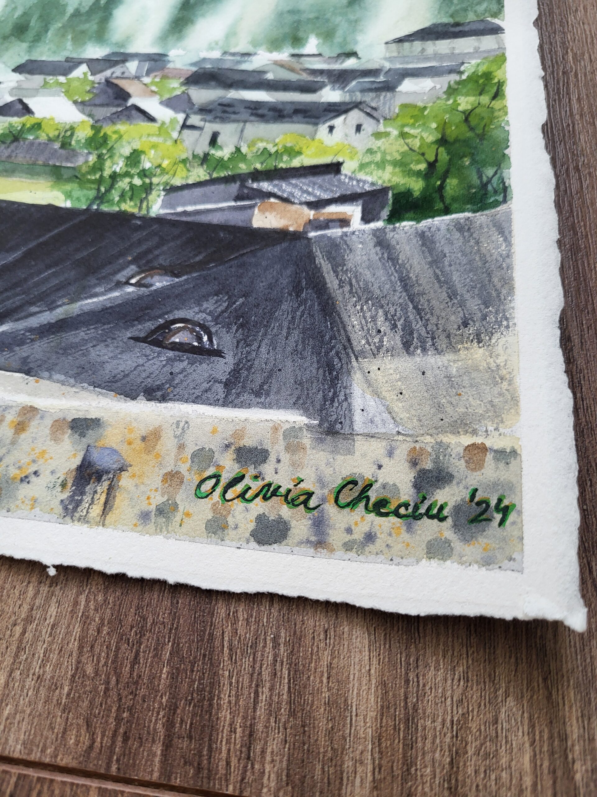 “Voroneț Village and Monastery”- transparent Daniel Smith and Winsor&Newton watercolors on Arches cotton paper, 300g, cold pressed, 38x56cm. 2024
