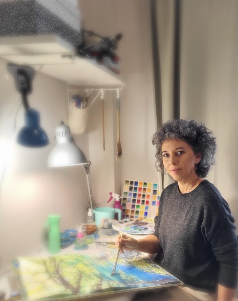 Pictez pentru a invita la o conexiune mai profundă cu lumina, locul și memoria, împărtășind ecouri de nostalgie prin acuarelă transparentă. Formată în arhitectură și arte, îmbin sensibilitatea structurală cu dragostea pentru dizolvarea granițelor – între precis și trecător, între văzut și simțit. Lucrările mele sunt înrădăcinate în peisaj și natură: păduri, case românești, anotimpuri schimbătoare, pâraie liniștite și priveliști montane maiestuoase. Temperez realismul cu atmosferă – umbre delicate, lumină difuză, transluciditate și tensiunea dintre claritate și mister. Acuarela îmi oferă instrumente pentru a exprima starea de spirit și amintirea: cum lumina soarelui se filtrează printre frunze, cum plutește ceața sau cum clădirile rurale îndură în liniște trecerea timpului, nepăsarea, vremea. Tehnica contează – ritmul laviurilor, pigmentul, hârtia – dar mai mult decât perfecțiunea, caut onestitatea. Arta mea este o ofrandă: să aduc frumusețe și nostalgie în case și să las privitorii să găsească în fiecare pictură un moment de liniște, emoție și uimire.