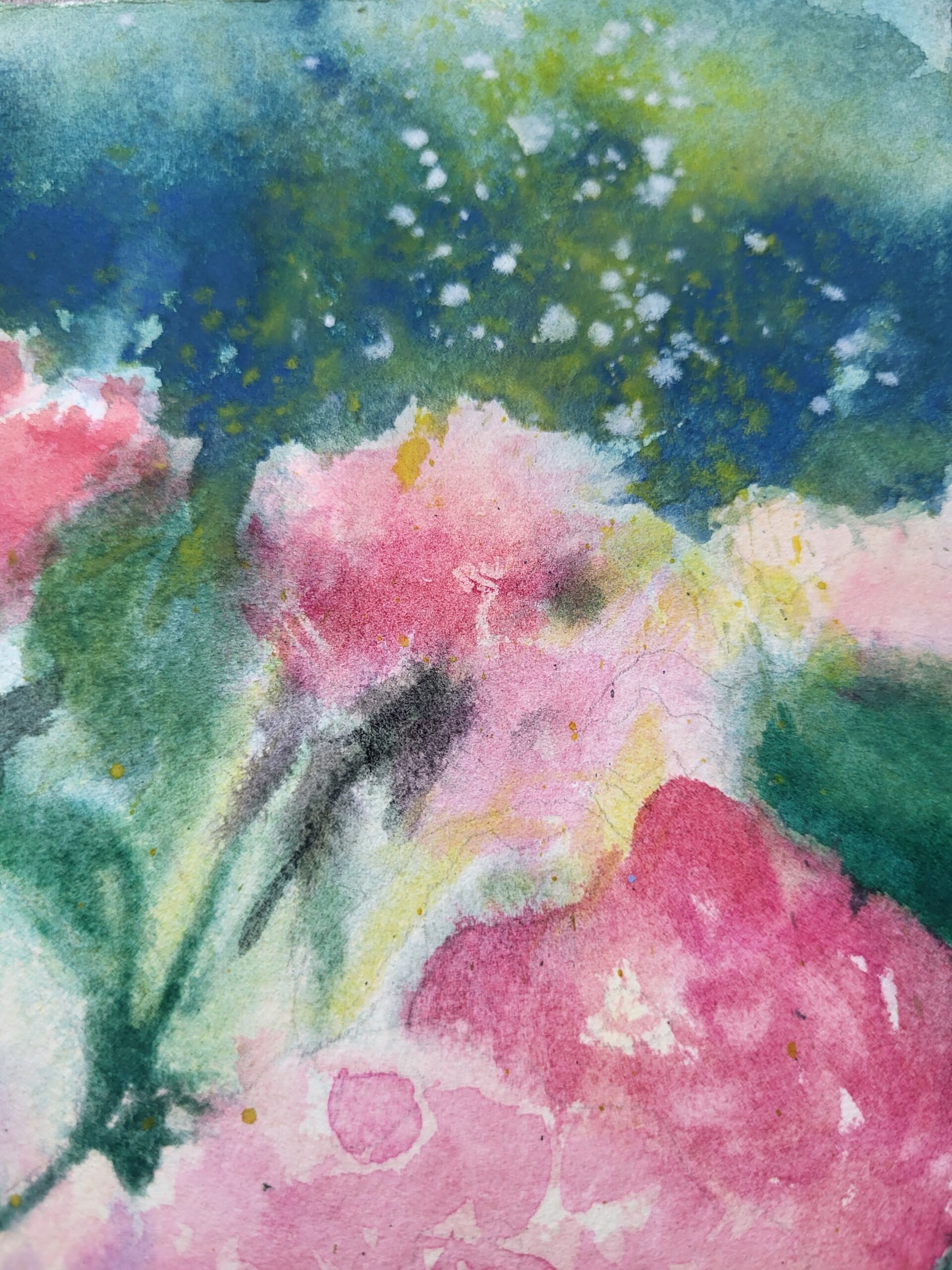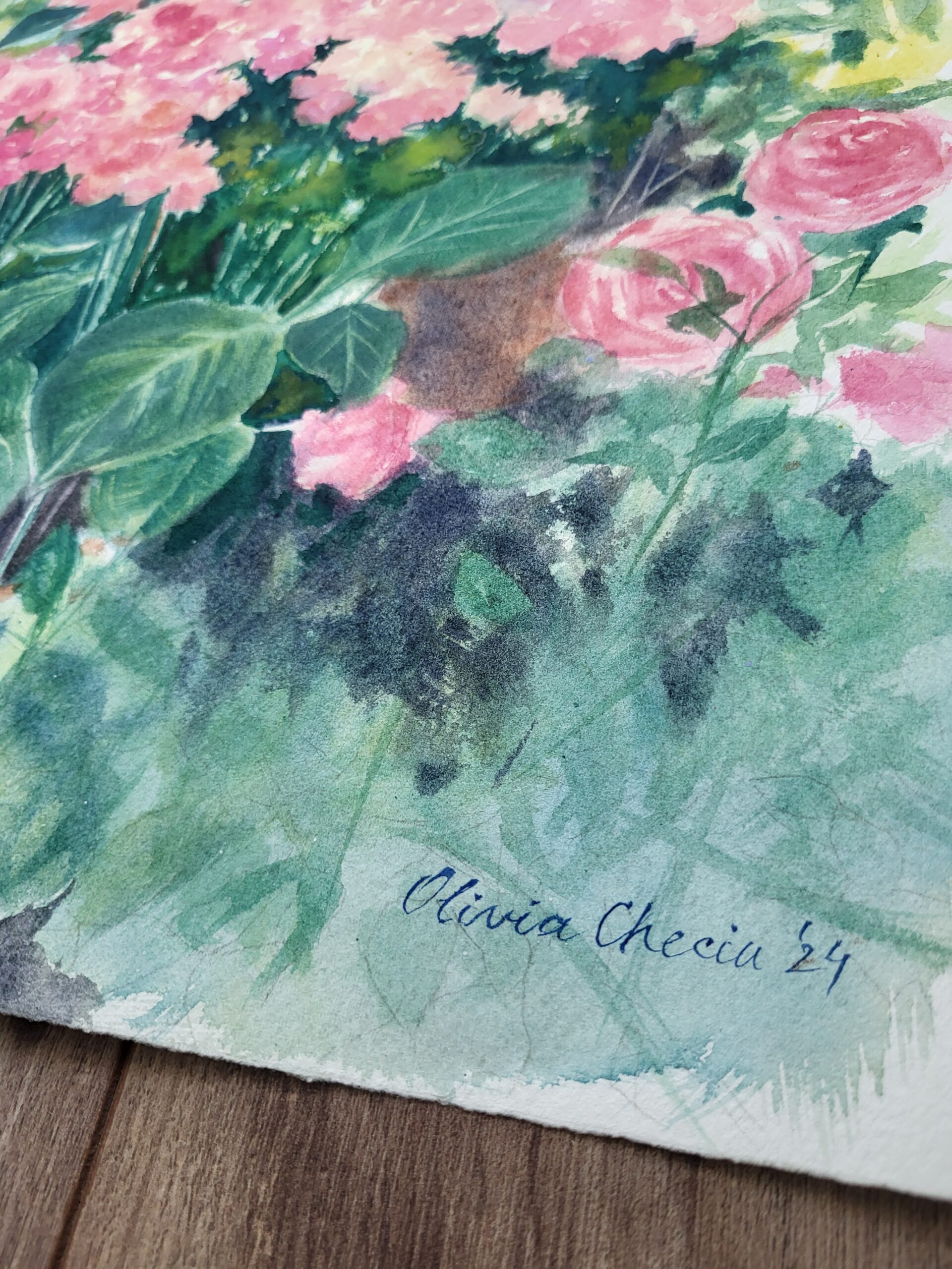 „Hortensii în Herăstrău”- acuarele pe hârtie Arches, bumbac presat la rece, 300g/mp, 38×56 cm. 2024